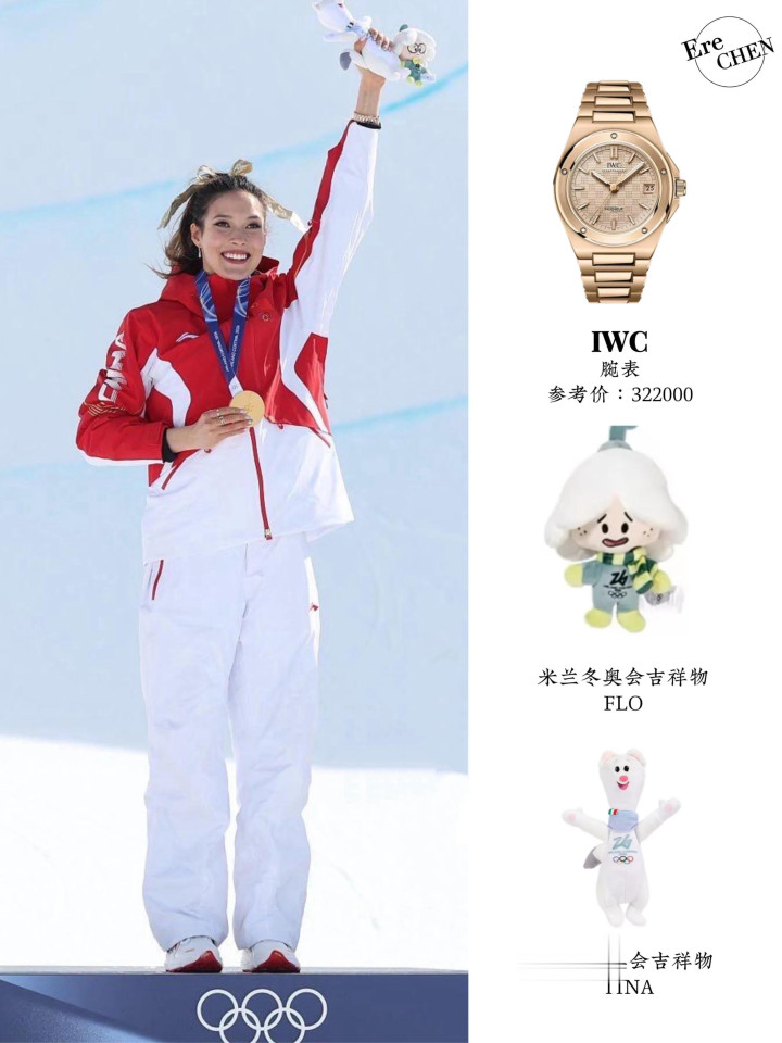 谷爱凌手腕上的手表来自IWC,这枚腕表价值32万,太奢华了。谷爱凌站在奥运会金牌领奖台上,这个广告位太瞩目了,IWC很有眼光。