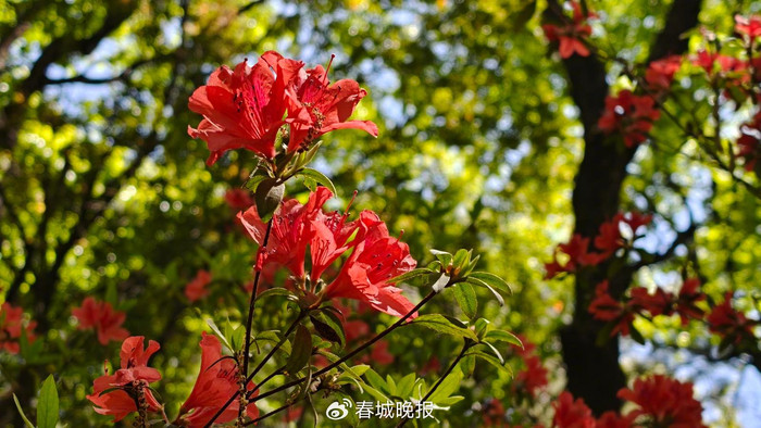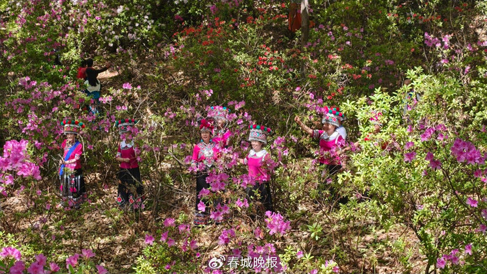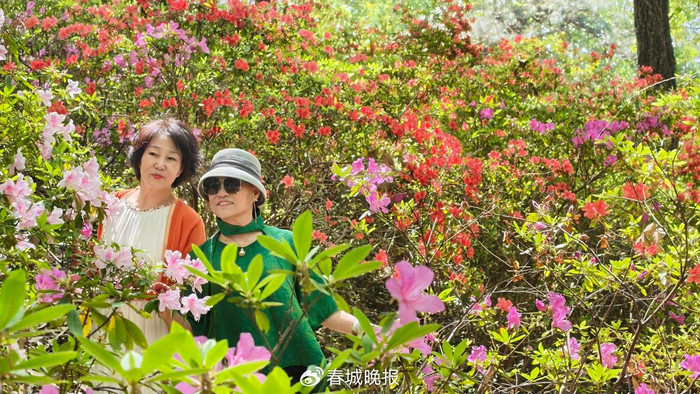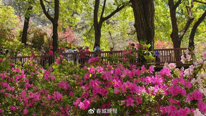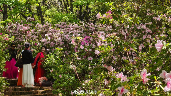 游客们沿步道拾级而上,穿行于花海之间,驻足观赏,拍照留念,尽情享受着人在画中游的诗意与惬意。“每年春天都要来黑龙潭公园看杜鹃,今年的花开得很好,颜色特别美,看着心情都变好了。”一位正在花丛中留影的市民兴奋地说。